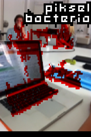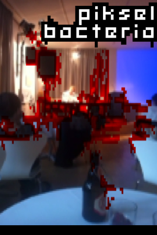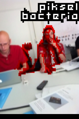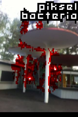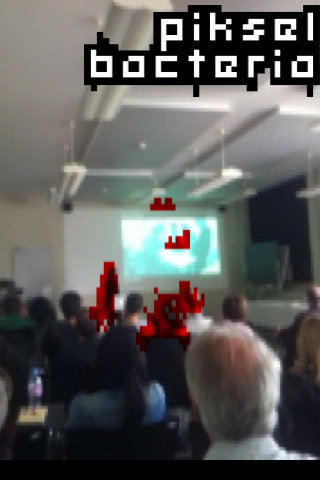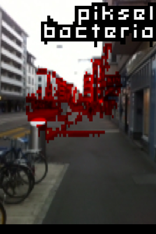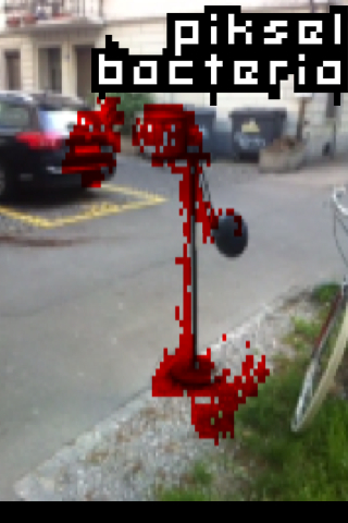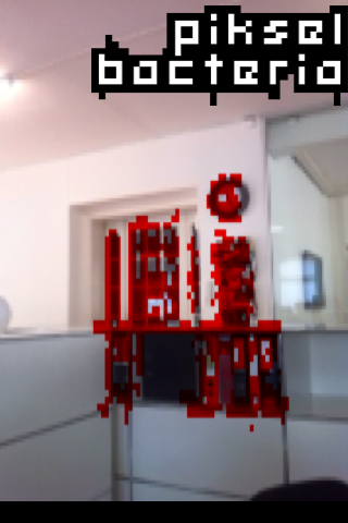 PikselBacteria is also a comment on the augmented reality scene. Augmented reality is a technic to overwrite our normal reality. One day, dictators will be able to walk across our planet with augmented reality goggles and say: "I do not see any poverty." They may even walk straight through shanty towns and favelas and say: "I do not see any suffering." And in a peculiar way, they may be right: Augmented reality will remove all the ugliness and unfairness from our view and create a brave new world.